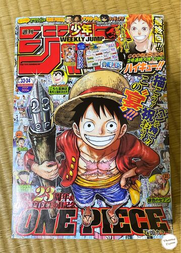 最終回 は センターカラー で の 終幕 先週に続き購入 『週刊少年ジャンプ』33・34合併号 表紙&巻頭カラー 連載23周年&ONE PIECEの日記念『ONE PIECE』 そして 特大センターカラーでの最終回!! 8年半の連載にピリオド!2号連続大増で28ページ 『…